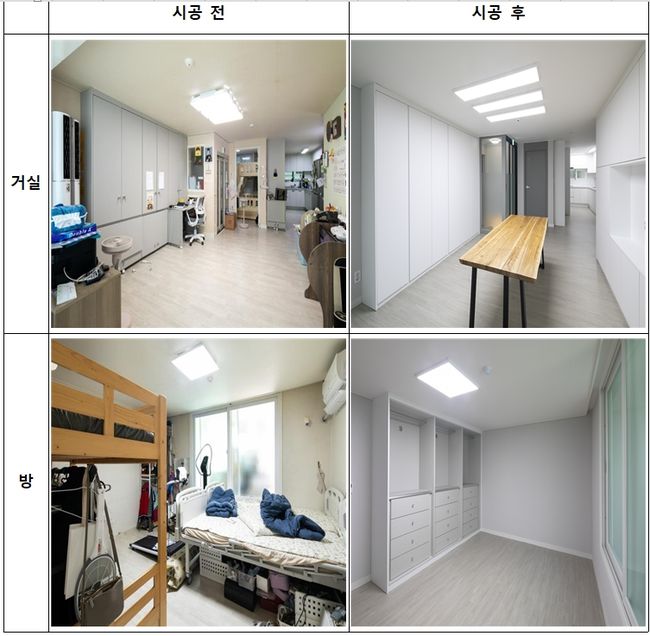 올해 초 사업대상지로 먼저 확정된 ▲무지개 공동생활가정(북구)의 경우 8월 24일 새 단장을 마쳤다. 이는 보호가 필요한 아동·청소년들이 함께 생활하는 비공개 소규모보육시설로 4세 유아부터 초등·중학생까지 총 5명의 남아가 함께 생활하고 있다. 주택도시보증공사가 재원을 후원하고, 디자인도스의 송지윤, 서현우 건축사가 설계를 맡아 시설 노후로 인한 단열과 공간 활용에 어려움을 겪었던 문제를 해결하고 아이들을 위한 밝고 따뜻한 보금자리로 거듭났다.