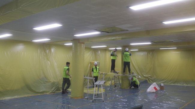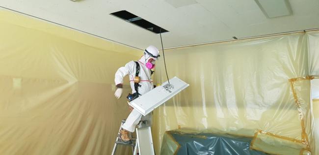 석면 건축자재(천장재) 해체․철거를 위한 비닐보양작업