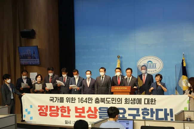 성명 발표에는 국민의힘 이종배·박덕흠·엄태영 의원과 더불어민주당 변재일·임호선 의원과 황영호 충북도의회 의장도 함께했다.