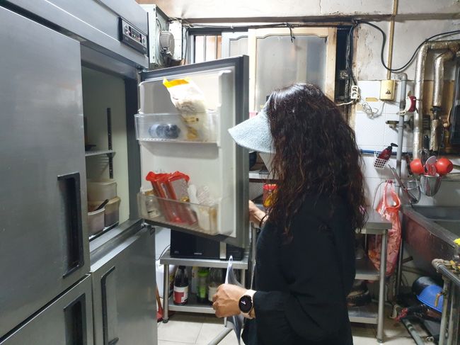 학교주변 식품안전보호구역 내 음식점에서 냉장고 청결관리 상태를 살펴보는 모습