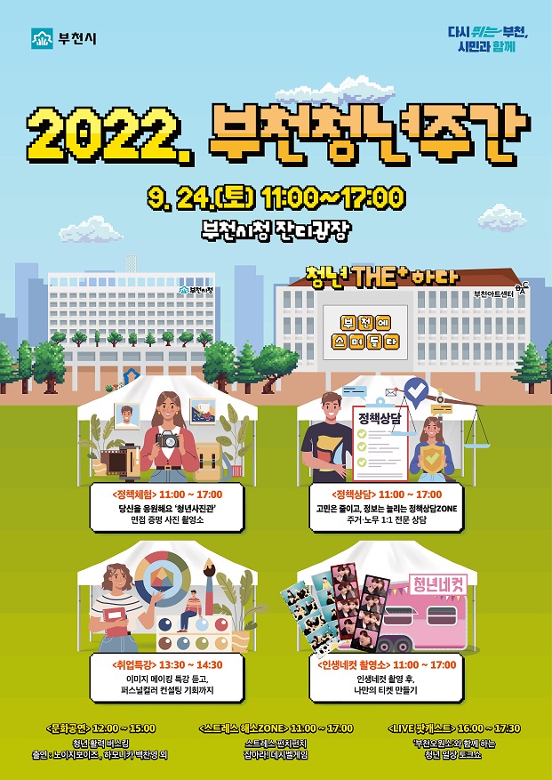 부천시(시장 조용익)는 오는 9월 24일 ‘2022 부천 청년주간’ 행사를 추진한다고 밝혔다.