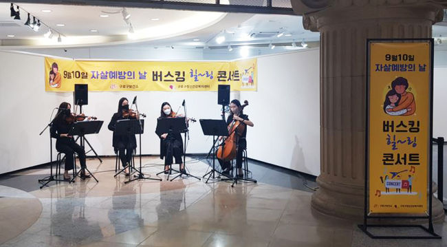 구로구는 세계 자살예방의 날을 맞아 7일 서울생활문화센터 신도림에서 `모두를 위한 위로 생명존중 캠페인 및 버스킹 힐링 콘서트`를 진행했다.