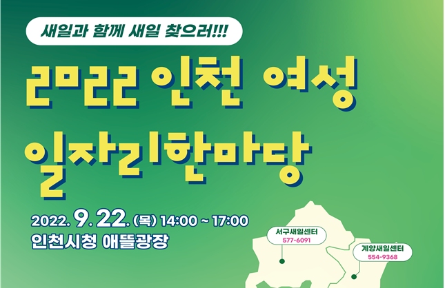 인천광역시는 경력단절여성 등 여성구직자들에게 취ㆍ창업 기회를 제공하는 `2022 인천여성 일자리 한마당`을 오는 22일(목) 오후 2시부터 5시까지 인천시청 애뜰광장에서 개최한다.