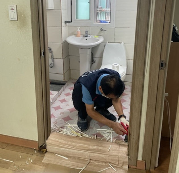 양천구, 희망의 집수리사업 대상가구 시공중인 모습‘희망의 집수리 사업’은 저소득 주거 취약가구를 대상으로 가구당 120만 원 한도 내에서 도배, 장판, 단열, 방수, 싱크대, 위생기구 등의 집수리를 지원한다.