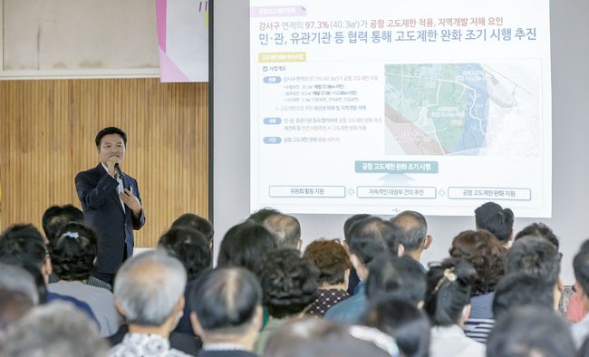 김태우 서울 강서구청장이 지난 20일(화) 오후 7시 구청 강당에서 지역 주민들에게 원도심 활성화(재개발·재건축)에 대한 비전을 직접 발표했다.