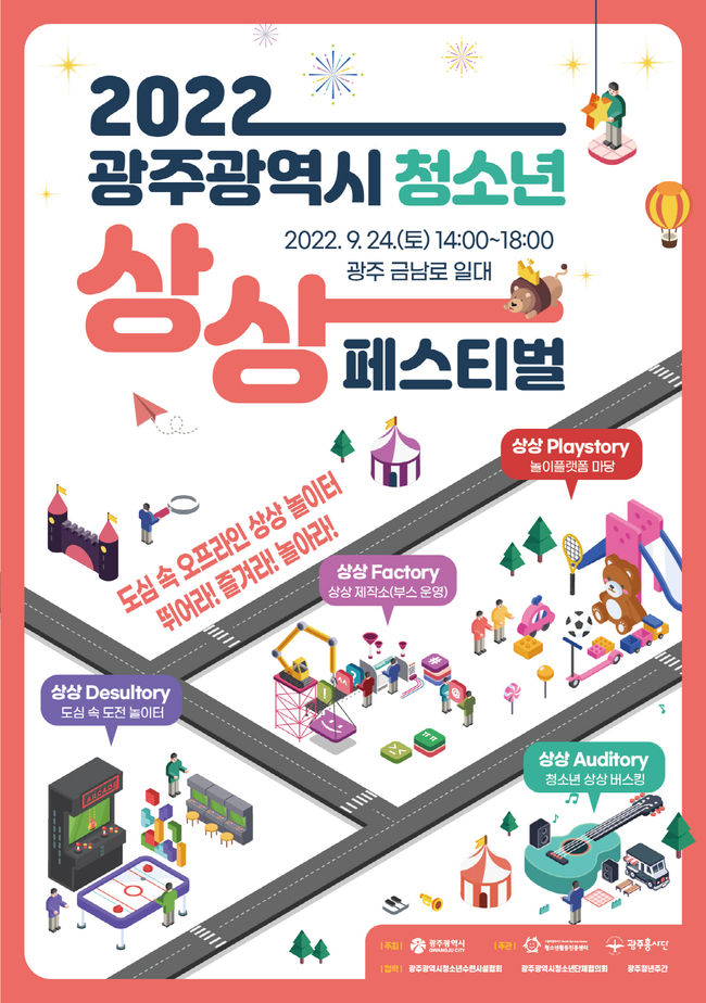광주광역시는 지역 청소년들이 상상력과 창의력으로 직접 기획·준비한 참여형 청소년축제인 `광주청소년상상페스티벌`이 24일 오후 2시 금남로에서 개최된다고 밝혔다.