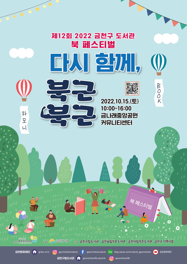 금천문화재단은 10월 15일에 책과 축제를 함께 즐기는 ‘2022 금천구 도서관 북페스티벌’을 개최한다고 밝혔다.