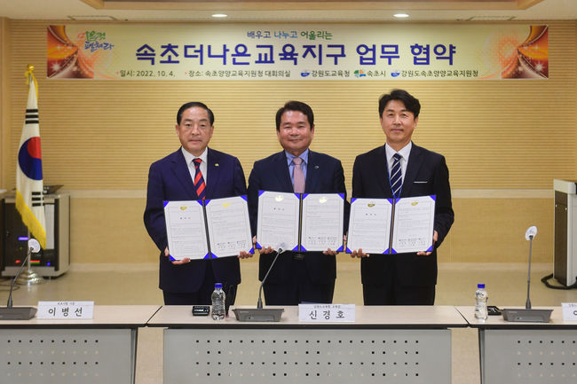 속초시는 4일 속초양양교육지원청 대회의실에서 이병선 속초시장, 신경호 강원도교육감, 이규형 강원도속초양양교육지원청 교육장, 초·중등 교장대표, 학부모 대표 등 19여 명이 참석한 가운데 ‘2023 더나은교육지구 업무협약’을 체결했다고 밝혔다.