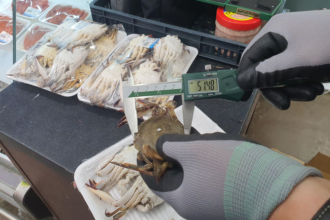 유통중인 불법어획물(어린꽃게) 사이즈 확인