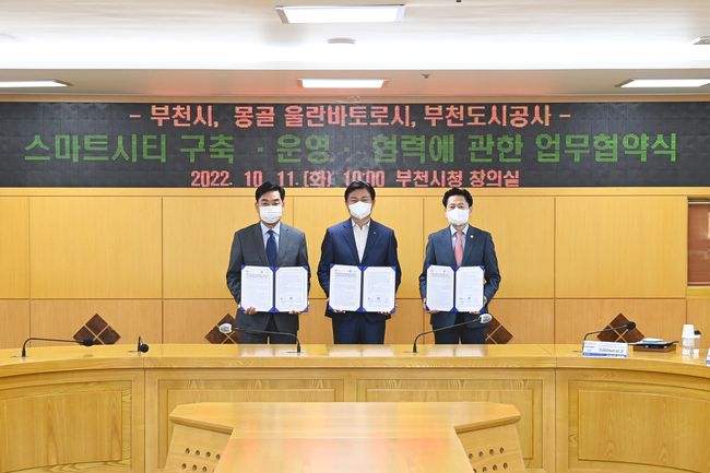 부천시는 부천도시공사와 함께 지난 11일 몽골 울란바토르시와 스마트시티 구축·운영 협력에 관한 업무협약을 체결했다고 밝혔다.