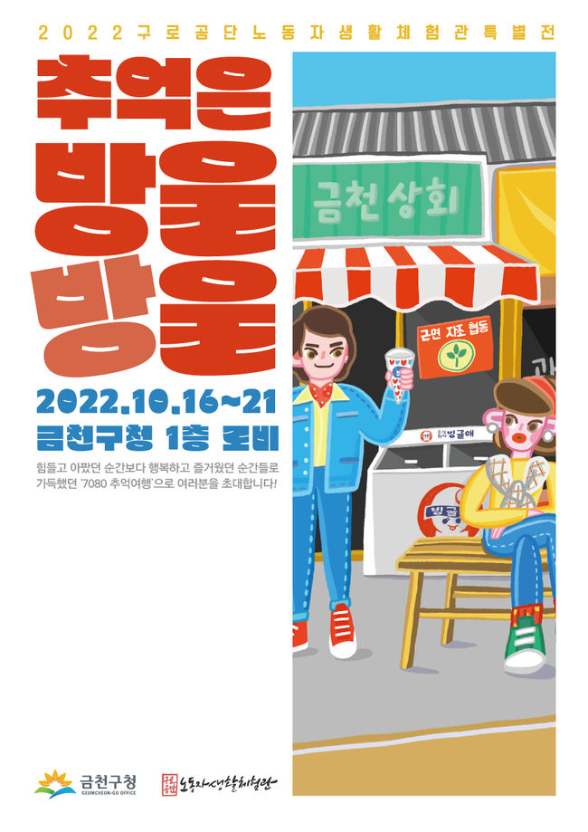 금천구는 ‘추억은 방울방울’이라는 주제로 1960~80년대 과거를 추억할 수 있는 생활 소품을 전시해 구민들에게 옛 시절에 대한 그리움과 소소한 행복감을 선사할 예정이다.