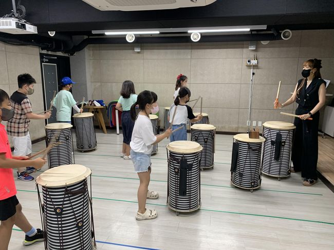 다문화 청소년들을 대상으로 난타 수업을 진행하는 모습