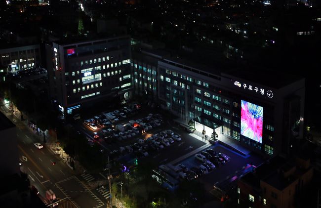 구로구가 청사 외벽에 대형 미디어캔버스를 설치하고 도시 풍경을 새롭게 단장했다.