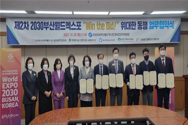 이번 업무협약을 체결한 5개의 기관·단체는 2030부산세계박람회 유치에 이바지하고자 자발적으로 업무협약에 참여했다. 이들 기관·단체는 앞으로 2023년 개최지 발표일까지 2030부산세계박람회 유치 홍보, 범국민적 공감대 형성 등 다양한 협력사업을 추진할 예정이다.