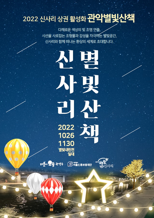 관악구가 서울신용보증재단과 함께 ‘신사리 상권’ 활성화를 위한 ‘관악 별빛 산책’을 10월 26일부터 11월 30일까지 개최한다고 밝혔다.