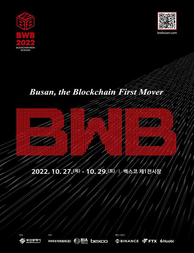 부산시는 10월 27일부터 29일까지 사흘간 벡스코 제1전시장에서 「Blockchain Week in Busan 2022」(이하 BWB)을 개최한다고 밝혔다.
