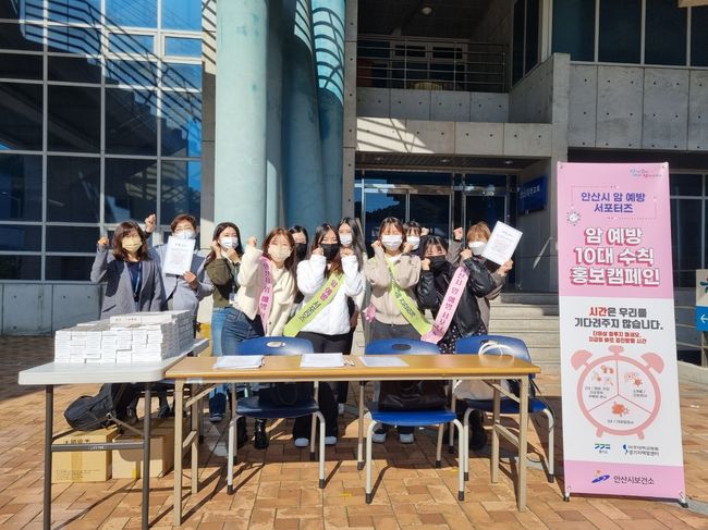 시가 지난해부터 운영 중인 암 예방 서포터즈는 주민 스스로 암을 예방하고 홍보하는 분위기를 조성하기 위해 지역주민 건강활동가와 안산대학교 간호학과 교수 및 학생으로 구성돼 다양한 방법으로 암 조기 진단과 암 예방 수칙 등을 적극 홍보해 왔다.