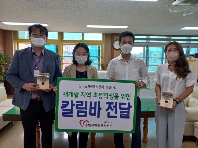 (재)광명시자원봉사센터는 재개발로 등하교에 어려움을 겪고 있는 초등학교 학생을 위해 자원봉사자들이 제작한 힐링악기 칼림바 전달을 완료했다고 25일에 밝혔다.