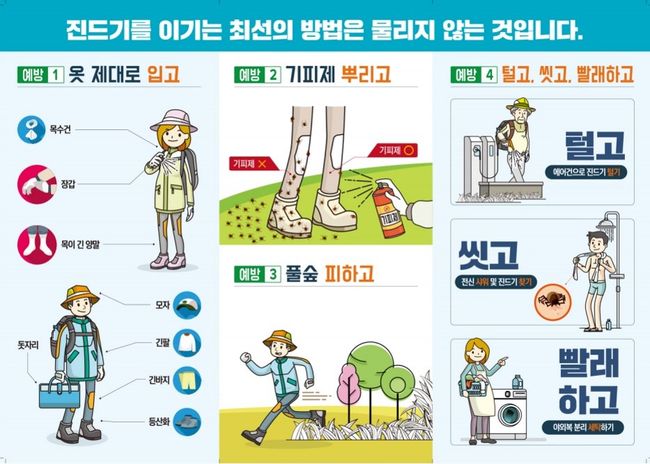 진드기 매개 감염병은 예방백신이 없는 만큼 진드기에 물리지 않는 것이 최선의 방법이다.
