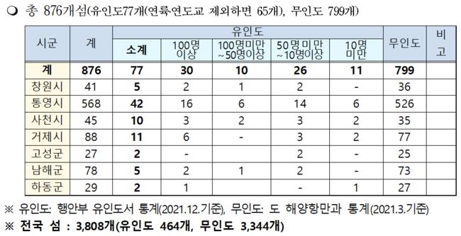 경상남도 섬 현황(제공=경상남도)