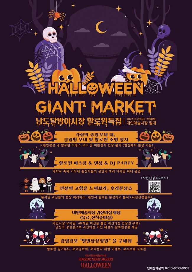 광주광역시는 10월31일 할로윈데이를 맞아 대인예술시장에서 28일부터 29일까지 ‘남도달밤예술야시장’을 할로윈 축제로 운영한다고 밝혔다.