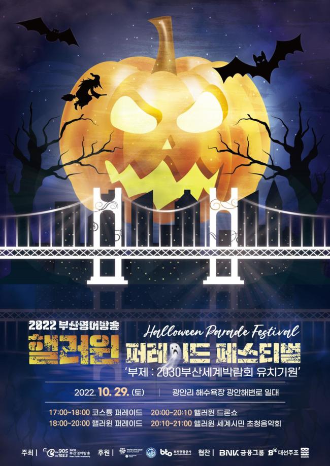 부산시는 29일 내일 오후 6시(사전행사는 오후 4시부터) 광안리 광안해변로 일대에서 ‘2022 핼러윈 퍼레이드 페스티벌’이 개최된다고 밝혔다.