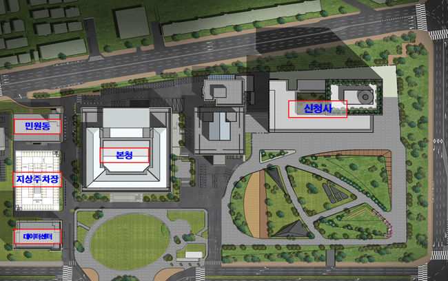 기존 청사(본관, 민원동)는 리모델링해 시민편의시설과 공연장, 북카페, 전시실, 기록관 등으로 활용할 계획이고, 신청사 지하주차장 상부 지상공간은 쉼터, 산책로, 광장 등을 조성해 시민 휴식과 문화가 공존하는 복합청사로 신축할 계획이다.