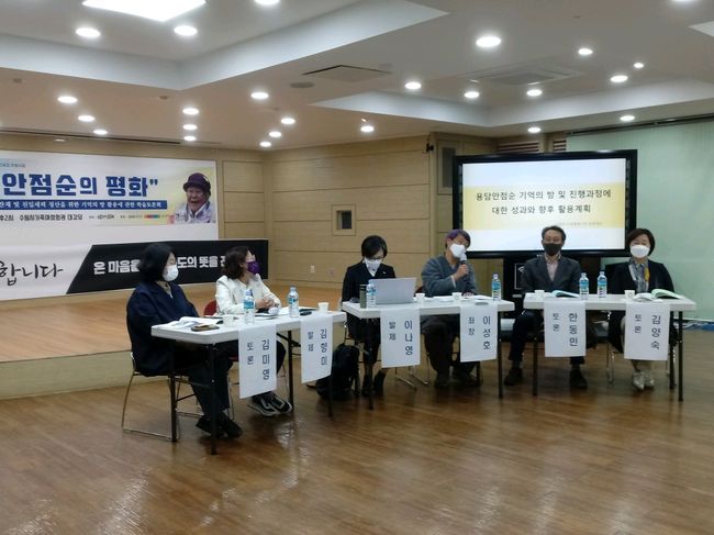 ‘여성운동으로서의 기억의 방’을 주제로 토론한 김미영 수원여성회 공동대표는 “용담 안점순 기억의 방이 여성의 인권과 권리 증진에 관한 시민사회 교육 공간으로 자리 잡아 우리 사회에 성평등과 평화가 실현되는데 기여하길 바란다”고 말했다.