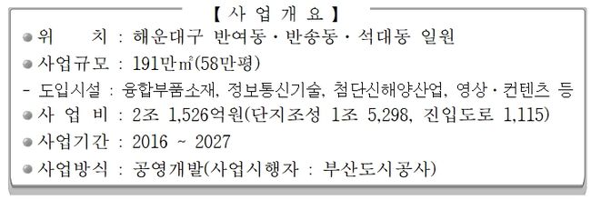 특히, 센텀2지구는 그동안 도시 외곽에 입지해 제조업 위주로 개발되었던 산업단지와는 달리 도심 내 위치한 4차산업 중심의 도시첨단산업단지로써, 수도권 중심의 창업 생태계에 대응하는 남부권 대표 창업 허브로 조성할 계획으로 부산의 미래를 이끌어 갈 성장동력으로 기대된다.