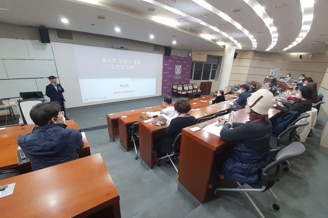 3년만에 재개된 강좌는 코로나19와 관련된 행정이야기를 다루며 지난 8일 ‘포스트 코로나 경제: 도전과 대응’을 주제로 박상인 교수가, 18일에는 ‘데이터로 바라본 코로나 이전과 이후 사회’를 주제로 고길곤 교수가 강좌를 진행하여 수강생들의 큰 호응을 얻었다.