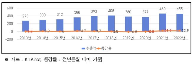인천 연도별 수출 실적(2013. ~ 2022.10.)