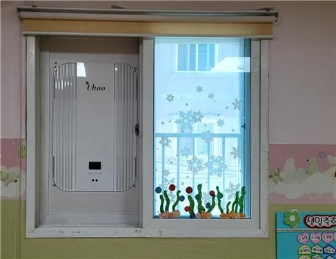 창문환기형 공기청정기가 설치되어 있는 모습