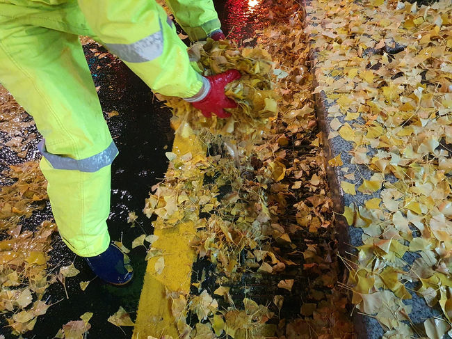 먼저 1단계 강우예보 시(강우 발생 3일 전)에는 청소행정과, 치수과, 동 주민센터에서 모든 가용 자원을 투입한다. 청소행정과는 지하철 역사 주변 등 유동 인구가 많은 특별관리노선의 낙엽을 집중 청소하고, 동 주민센터에서는 자체 인력을 동원해 이면도로 빗물받이 위주로 낙엽을 수거해 침수피해를 방지할 계획이다. 치수과에서는 강우 시 빗물이 잘 배수되도록 빗물받이 내부의 낙엽을 제거한다.