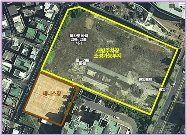 협약내용은 ‘자투리땅 개방주차장(자주식 노외주차장)’을 조성하는 것으로, 부지 전체 9,497㎡ 중 총 7,290㎡의 면적에 232면을 설치하기로 했다. 기간은 올해 12월부터 1년간이나, 개발공사 착공 전까지는 1년 단위로 협약을 연장할 계획이다.