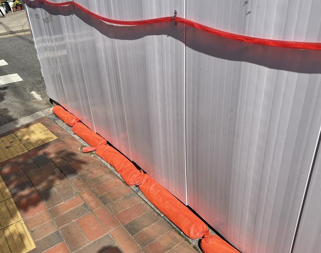 마지막으로, 보도와 접한 가설울타리 하부에 모래 마대 또는 콘크리트 구조물을 설치하도록 해 공사 중에 발생하는 토사유출을 방지한다.
