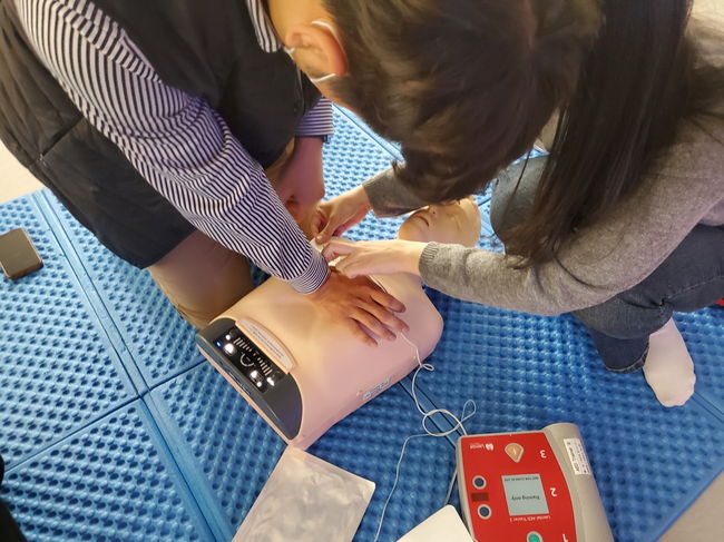 교육에 참여한 직원들은 실습용 마네킹을 활용해 심폐소생술을 실습했다. 한림대학교 동탄성심병원 전문가가 교육을 담당했다.