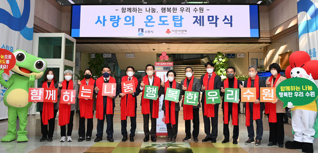 수원시는 5일 시청 본관 로비에서 ‘사랑의 온도탑’ 제막식을 열고, ‘희망 2023 나눔캠페인’을 시작했다고 밝혔다.