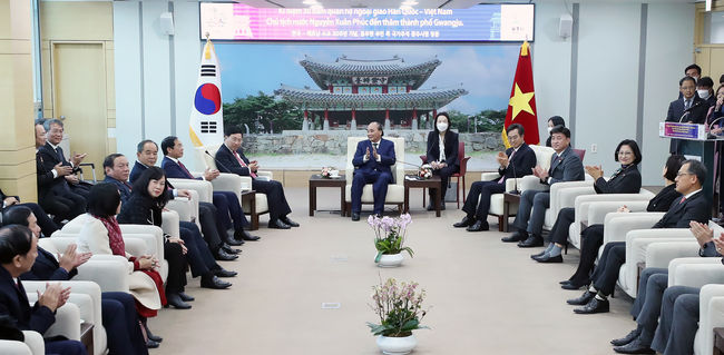 이날 광주시를 찾은 푹 주석은 광주시 역동 다문화가정을 방문한 후 광주시청으로 이동해 김동연 경기지사와 방세환 시장, 오영주 주베트남한국대사 등 주요 인사와 접견하고 방 시장과 환담했다.