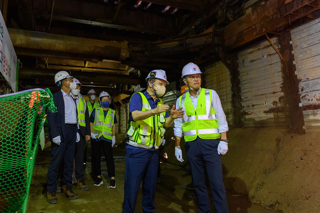 지난9월 국회대로 지하화 공사현장을 방문한 이 구청장