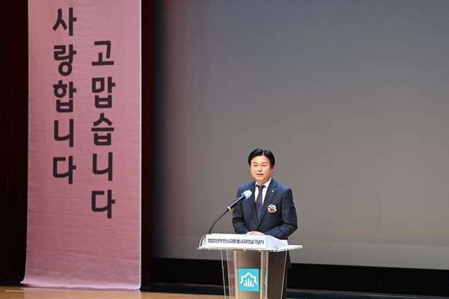부천시는 지난 6일 시청 어울마당에서 2022년 한 해 동안 이웃과 지역사회를 위해 나눔을 실천한 자원봉사자들의 노고를 격려하고자 자원봉사자의 날 기념식을 개최했다고 밝혔다.