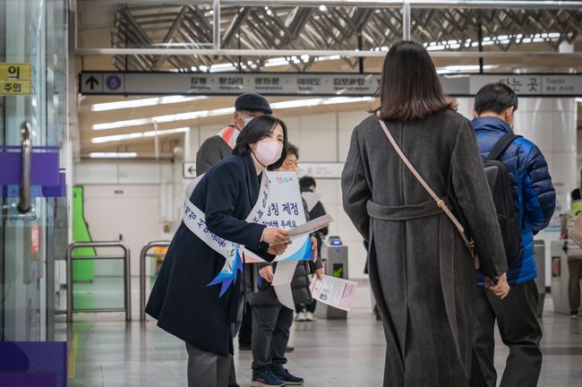 이수희 강동구청장은 12월 8일 오전 8시 고덕역을 찾아 ‘고덕대교 서명운동’에 참여했다고 밝혔다.