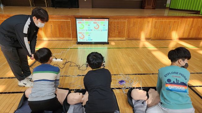 관내 초등학교 학생 대상 ‘스마트 안전체험 교육’에서는 CPR 시뮬레이터를 활용한 심폐소생술 교육을 진행한다. 화면을 통해 압박 깊이와 횟수, 시간을 확인할 수 있어 어린이 눈높이에 맞춘 체험이 가능하다.