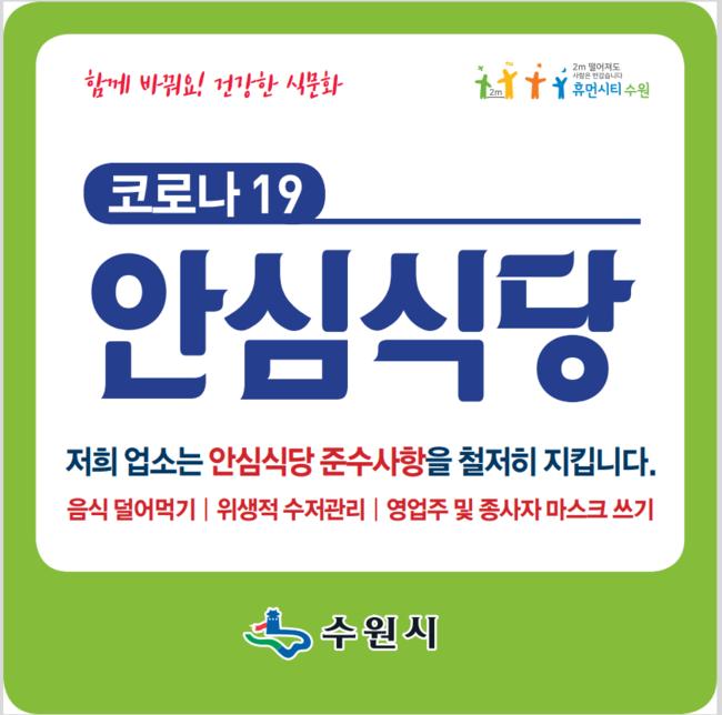 수원시 관계자는 “위생을 철저히 지키는 코로나19 안심식당이 많아지고 있다”며 “시민들이 편히 외식을 즐길 수 있기를 바란다”고 말했다.