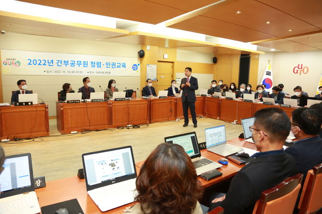 구로구는 지난 10월 18일 5급 이상 간부공무원을 대상으로 반부패‧청렴교육을 실시한 바 있다. 구는 청렴한 조직문화를 조성하기 위해 직급별 맞춤형 청렴교육을 추진하고 있다.