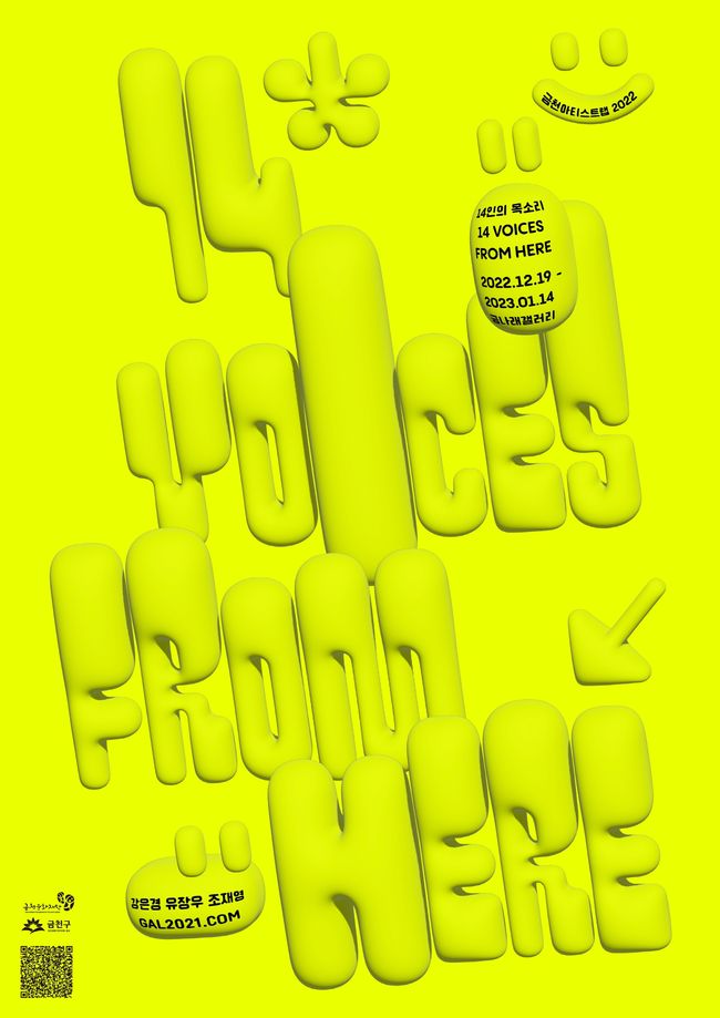 금천문화재단은 12월 19일부터 금천구민과 문화예술공간 종사자의 이야기를 담은 전시 ‘14인의 목소리(14Voice from Here)’를 금나래갤러리에서 개최한다고 밝혔다.