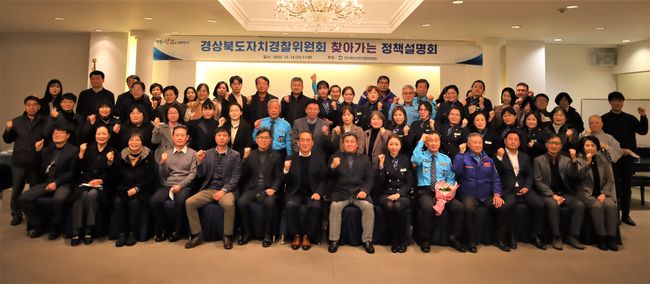 설명회에는 지역 도의원을 비롯해 도로교통공단, 한국교통안전공단 등 유관기관과 자율방범대, 녹색어머니회, 도민모니터링단 등 치안협력단체 회원, 경북치안행정길라잡이 정책연구단 등 100여명이 참석했다.