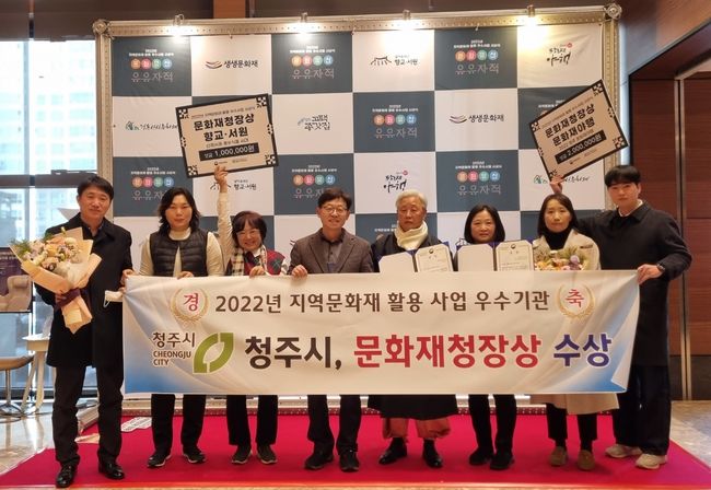 청주시가 전국 지자체를 대상으로 문화재청이 실시한 ‘2022년 문화재 활용사업’과 ‘2022년 문화재 보존관리 유공’ 평가에서 우수 지자체로 선정돼 문화재청장상을 수상했다고 14일 밝혔다.