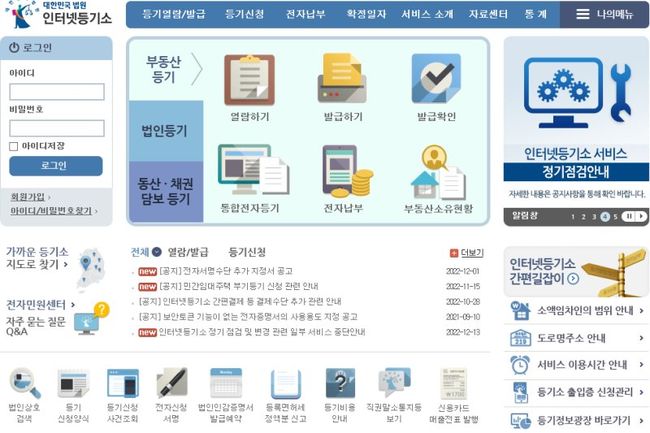 앞으로 스마트폰에서 부동산 및 법인 등기사항증명서를 확인하고, 제출까지 가능해진다. 이미지는 인터넷등기소 화면.