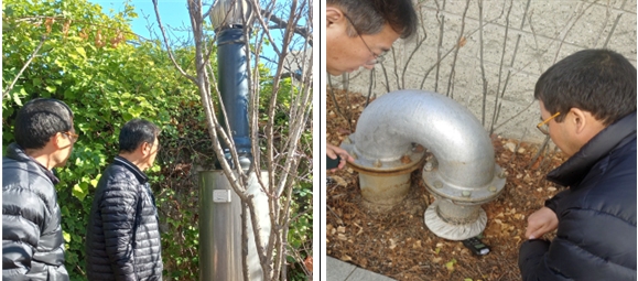 왼쪽) 동구 솔밭삼거리 지주형 배기관 오른쪽) 북구 양정동 곡관형 배기관