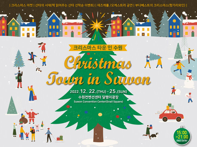수원컨벤션센터가 12월 22~25일 오후 3시부터 9시까지 수원컨벤션센터 광장 일원에서 ‘2022 크리스마스 타운 인 수원’ 행사를 연다고 밝혔다.
